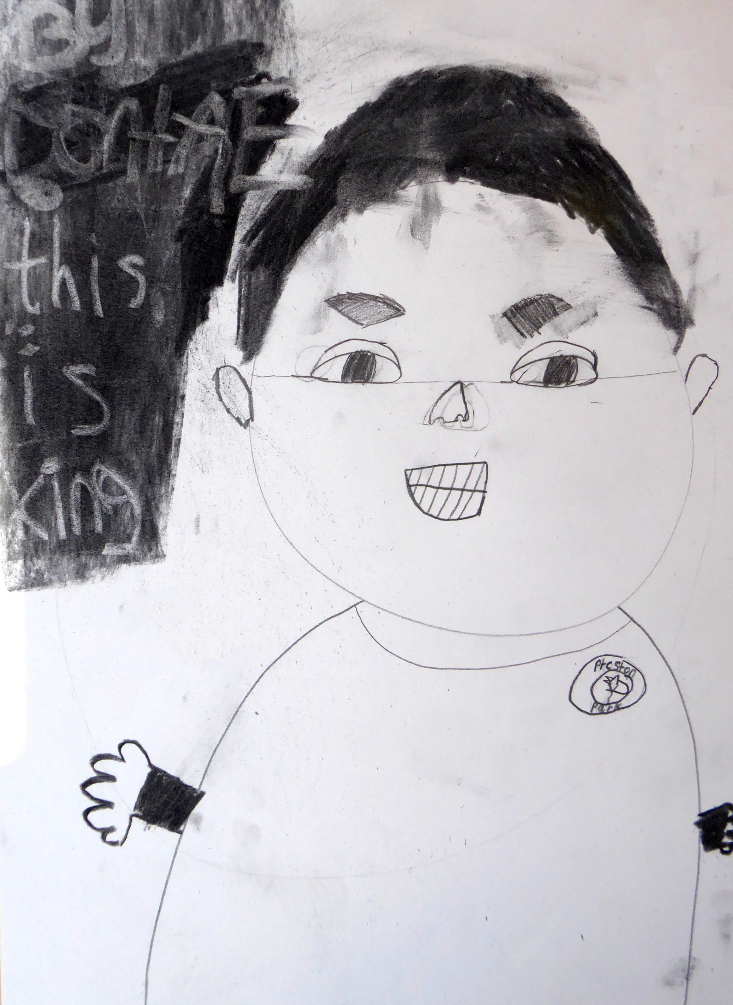The group at drew some great portraits of each other using charcoal and graphite pencils. The portrait on the left was of King, drawn by Dontae. The groups I work with quite often say they can’t draw, or they can’t draw people, but his exercise quickly gives each child confidence, and if they do struggle then I am there to help.