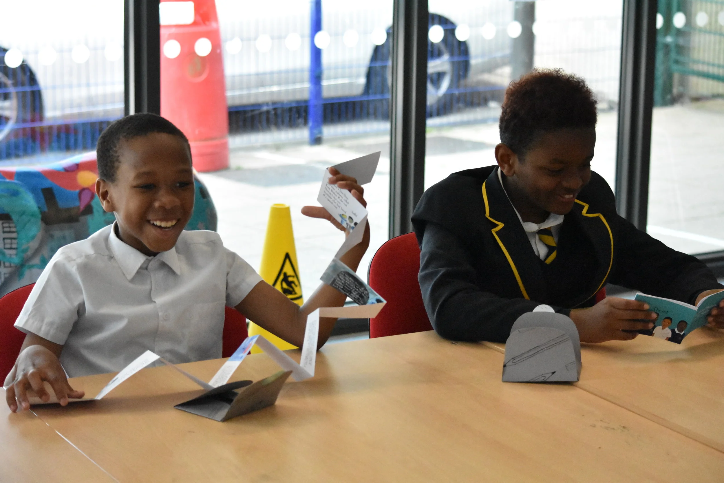 At the end of a project I go away and work really hard scanning and editing the the stories and drawings created by the group I have worked with, then printing cutting and folding the mini books that each child receives. This picture is taken just as two of the children from Preston Park Primary received their mini books - one of my favourite parts of Story Drawing Club!